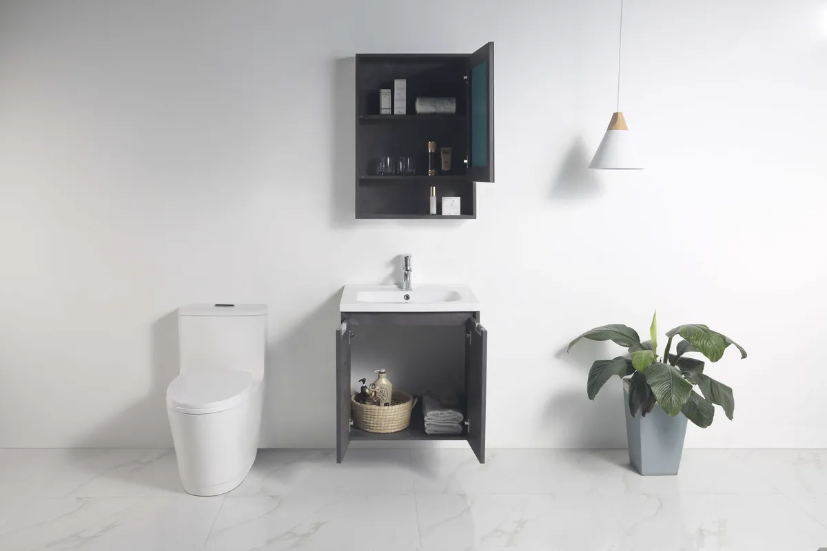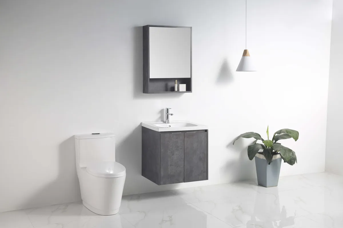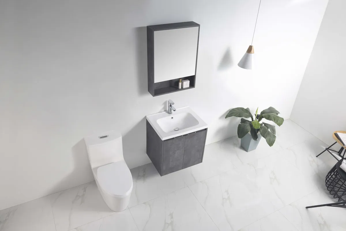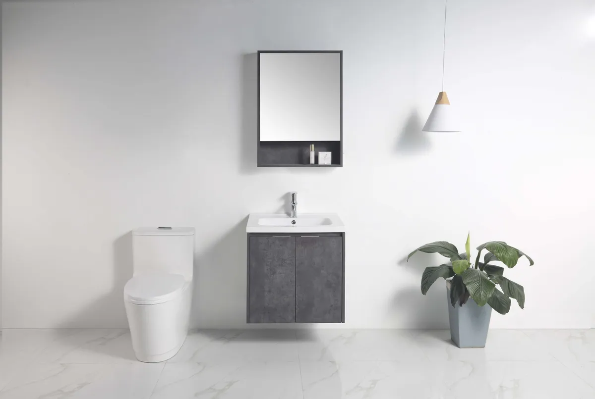 60CM雲石匠成防水浴櫃組-深灰